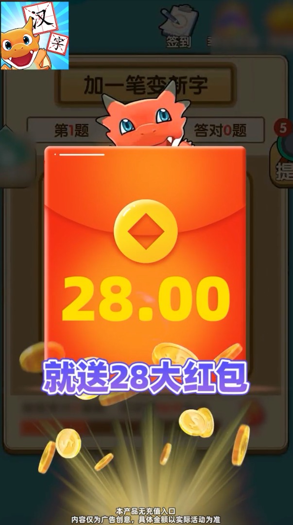1、《肥龙识字》让你赚得更多,猜对每题即可领取红包,提现瞬间到账!