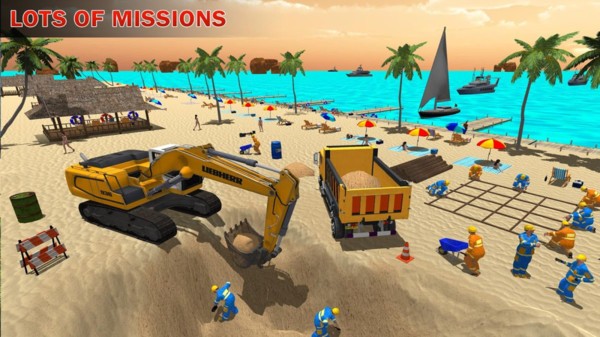1、通过轻松操控各类机械施工,挖掘机挖土、卡车运输建筑材料,尽在掌握之中;