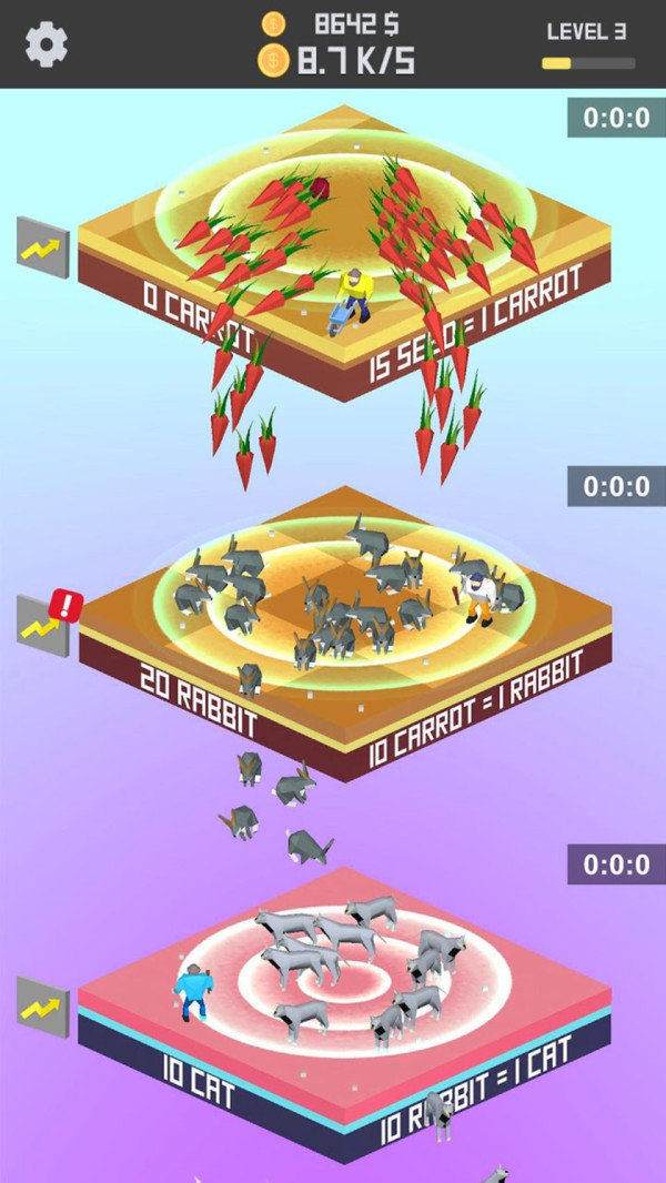 2、可进行升级与扩展,让您一次性放置更多高级动物,获取更多金币;