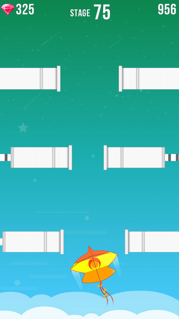 2、随风而动的风筝,令空中障碍物也随之摇摆,增添了游戏的挑战性;
