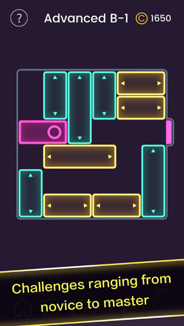 1、引导红色方块顺利到达出口,成功的玩家将可免费解锁500个谜题关卡。