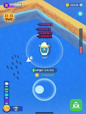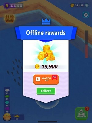 2、简约而轻松的游戏画面,辽阔的大海景色,众多鱼类静待你的收集;