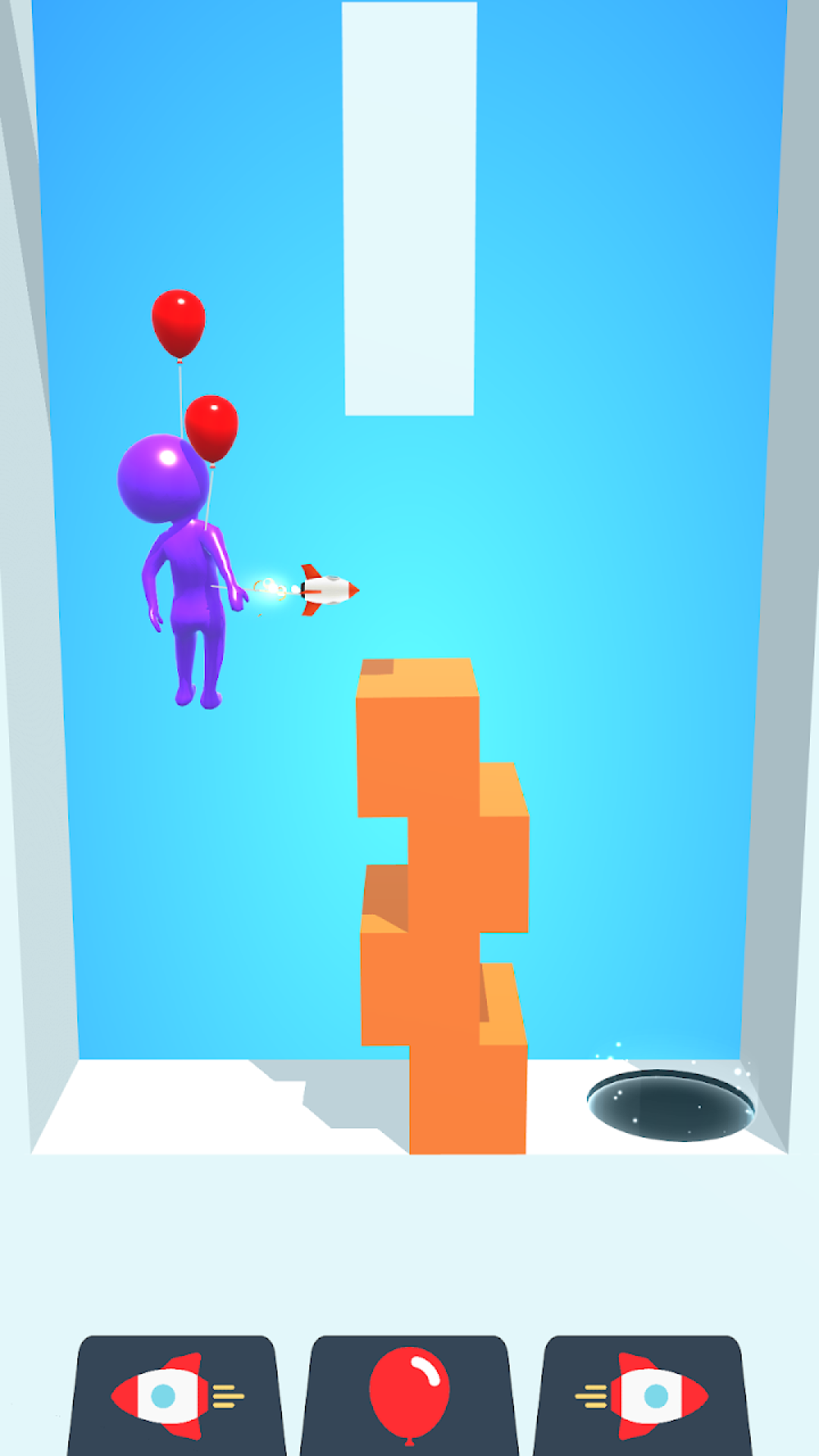 将这个懒惰的火柴人推进洞中,最简便的移动方式便是借助气球和火箭!
