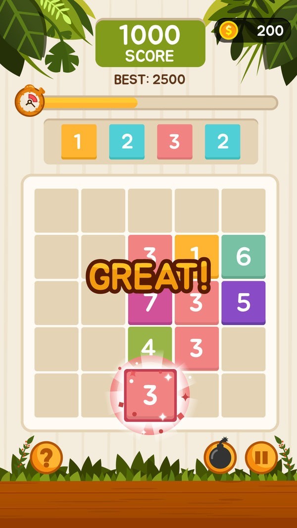 2、游戏中设有多种颜色的数字方块,玩家通过点击进行合并。