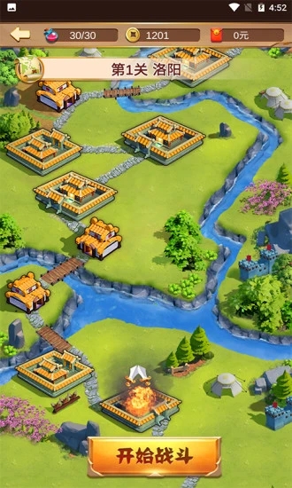 关二爷携带小兵,勇闯五关斩六将,途中需要击败各式敌人,攻克城墙;