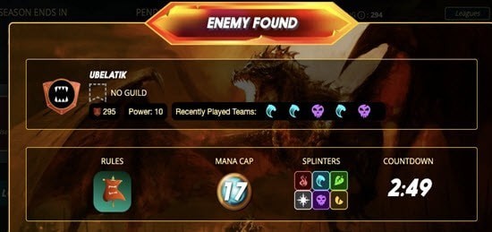 3、在每局游戏开始之前,您将能预览对手的基本信息,包括他们近期所使用的英雄与卡牌,同时也会展示本局游戏的MANA上限。