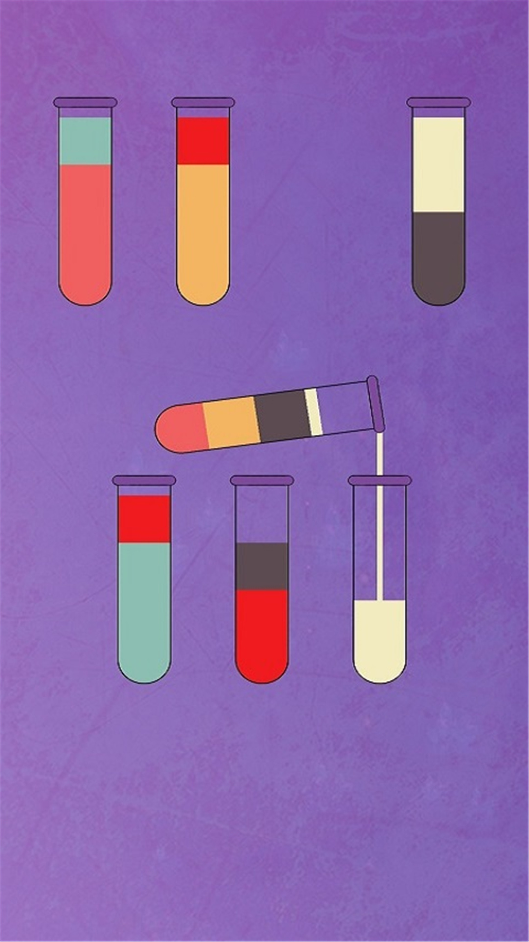 包治百病,热销的休闲小游戏,挑战您的思维极限。您将对试管中的各色液体进行巧妙排序,随时进行PK,您是青铜还是王者,尽在一念之间。游戏规则,通过将不同颜色的水进行分类,成功完成所有分类即可通关。