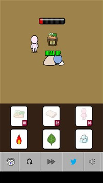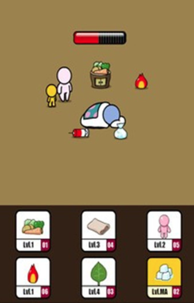 1、通过点击道具栏中的物品,为倒地的火柴人进行治疗。
