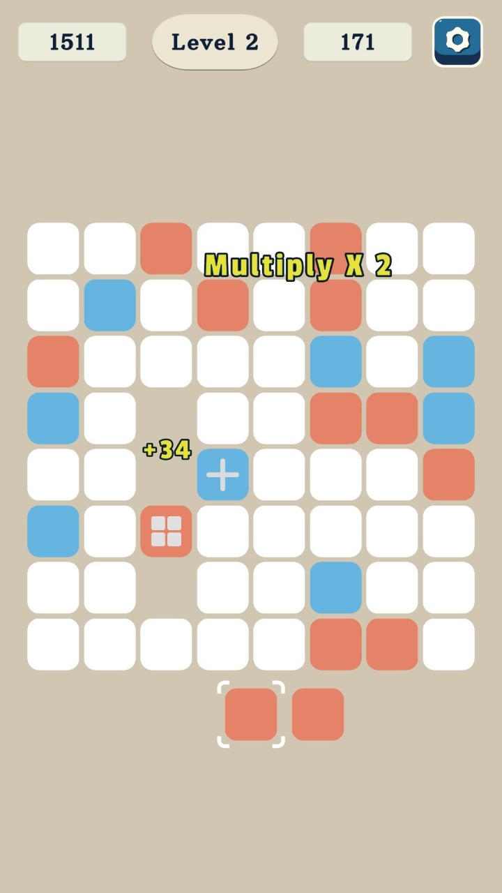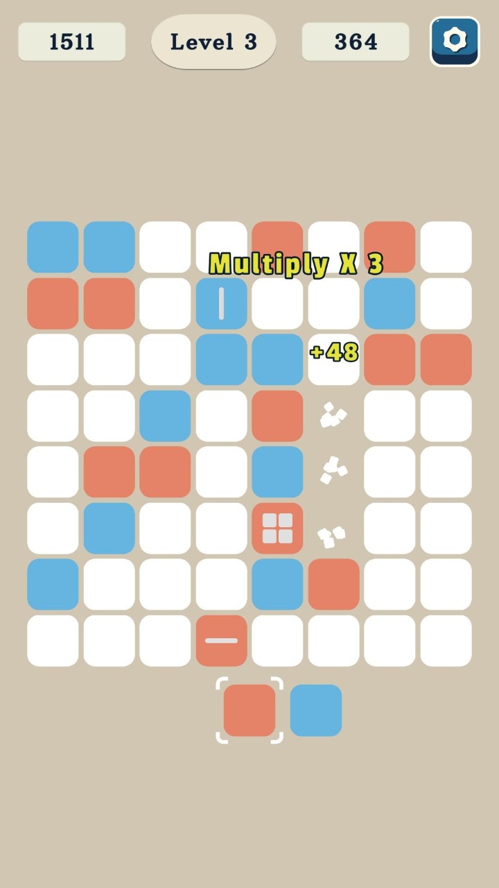 3、崭新的三消玩法:为方块染色,使之与相邻方块同色,凑成三者可实现消除。