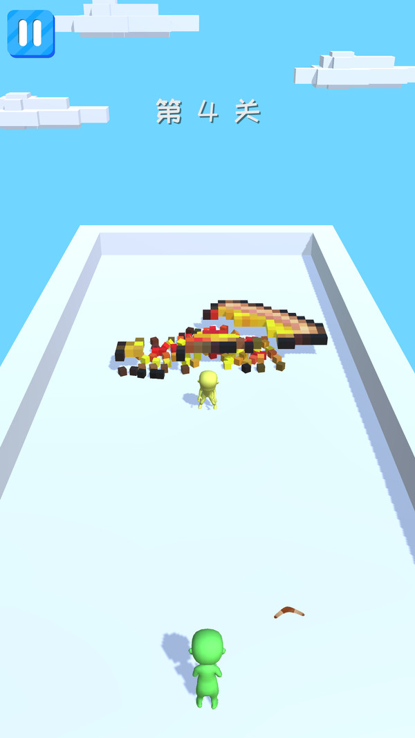 通过滑动屏幕,调节飞镖的飞行轨迹,击碎所有方块以顺利过关。