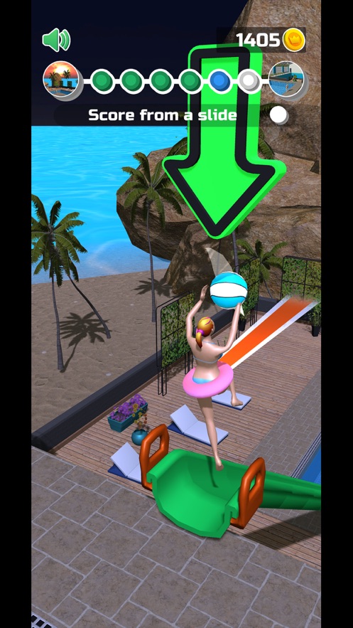 传球大湿Wet Hoops,是由毒厂Voodoo全新倾心打造的休闲投篮小游戏。游戏的玩法一如既往地充满,在各个泳池中开启灌篮挑战,成功扣篮即可得分,解锁新颖的皮肤道具,与各种滑梯、飞机等趣味道具尽情互动。