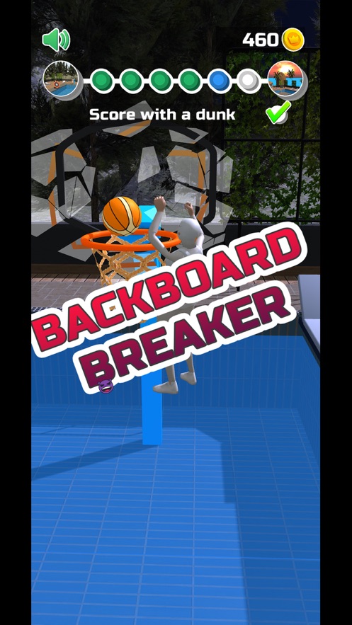 这是一款模拟扣篮的游戏。在游戏中,玩家将置身于一个酷炫的游泳池。你所需做的,便是在那清澈的水面中尽情扣篮。整体玩法颇为,只需精准地将篮球投进池中的篮筐即可!
