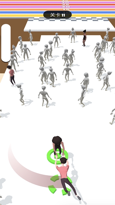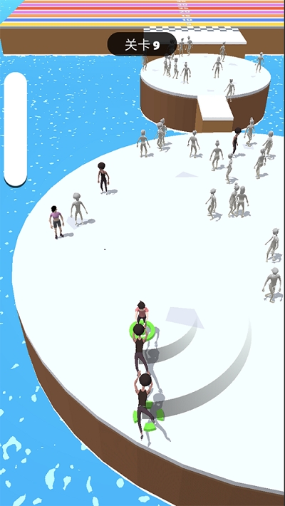 2.玩家需要操控自身的人群,借助不断旋转的动作,解救出自己的同类。