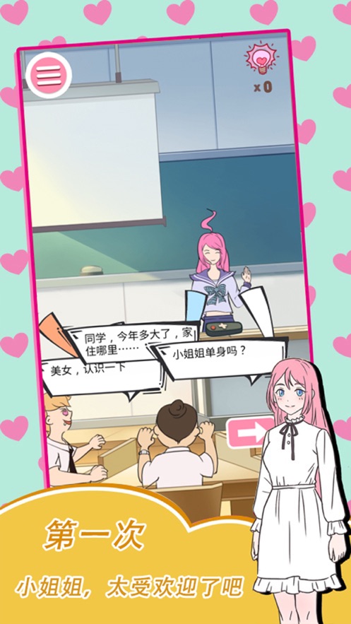 亲亲小姐姐是一款充满浪漫恋爱氛围的,每位玩家需细致观察游戏中的场景,发掘各类信息以推动剧情的发展。新的挑战与冒险将不断向您袭来,唯有真正的恋爱大师才能完成所有的攻略。