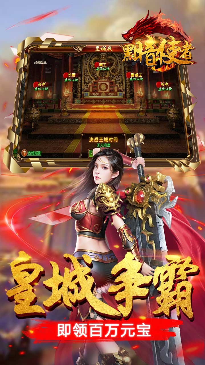 《黑暗使者》是一款的角色扮演游戏,登录即赠送svip12、18万元宝、华丽时装!免费尊享贵族特权,尽情体验高玩福利!传承三大职业玩法,创新跨服攻城、跨服打宝,爽快无比。全新推出霸者主宰套装,强大的boss阵容,装备可自由合成升级,皇城争夺百万宝藏!兄弟们,不要再犹豫,速速加入战斗的行列吧!
