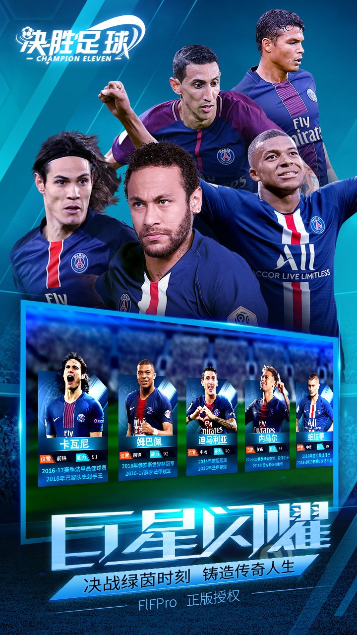 在转会市场中招募巨星,经过专业比赛训练、掌握各类赛场技能,配备丰富的足球装备,全面提升巨星实力,缔造你独特的明星球员,叱诧赛场!