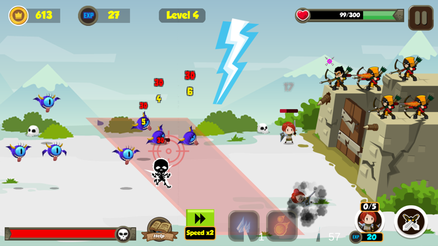 4. 海量关卡,随着游戏进程,关卡内的怪物BOSS将愈发强大,需合理运用技能与布局。