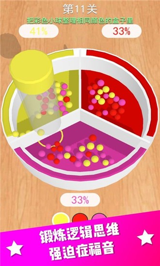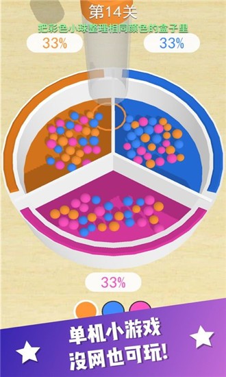 2、炫彩缤纷的球球们在等待你的分类,轻触屏幕,迅速吸取小球哦;