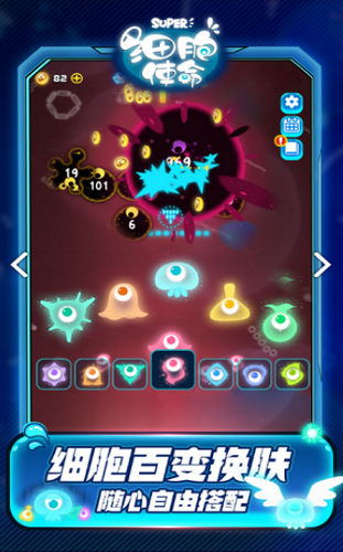 细胞使命手游是一款十分而又趣味盎然的类游戏。在游戏界面中,各种病毒将接踵而至,作为细胞的我们,必须分泌出攻击物质来击退敌人,伴随其间的是动感十足的背景音乐。精美可爱的皮肤等待着我们去解锁,令画面更加生动迷人。
