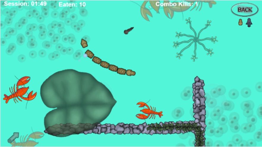 2、每当虾发现你,便会迅速朝你游来,发起攻击,攻击范围内的蝌蚪皆会无一幸免。