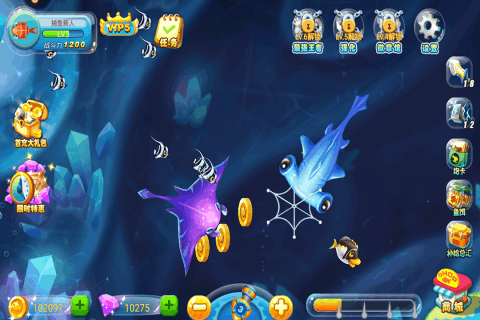1、瞬息万变的3D深海实景,让玩家体验到CG级的视觉盛宴,真正融入真实的捕鱼世界。