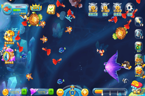 1、画质优美,各种炫酷的游戏特效让玩家沉浸其中,鱼群丰盛,爆率极高,各类奖金源源不断。