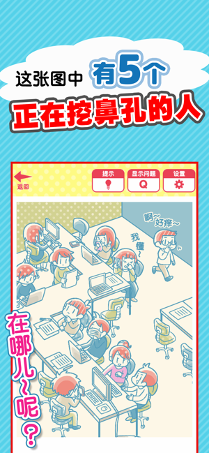 《正在偷偷抠鼻屎的人》是一款充满画风的趣味小游戏,深刻考验着玩家的观察力。在游戏的故事中,课堂上聚集着一群形形色色的同学,有的低声交谈,有的悄悄品尝零食,形态各异。你需要凭借敏锐的洞察力,找出那个正在偷偷抠鼻屎的同学,成功揭示之后便可获得胜利,令人倍感成就!