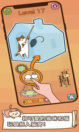 这是一款以可爱猫咪为主题的休闲益智,玩法围绕着收纳整理猫咪、猫玩具及猫食物到猫窝进行。其玩法类似于或积木搭建游戏,玩家需要将散落在猫窝外的猫咪、猫食、猫玩具一一拖放进形状各异的猫窝中,同时避免它们之间的碰撞!