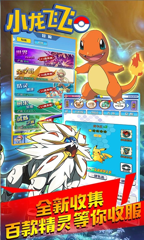 在这里,玩家们将沉浸于刺激的口袋怪兽战斗中。本游戏源自日本人气漫画,是一款采用放置性休闲玩法的卡牌游戏,许多你所熟悉的小精灵将纷纷登场。上百种卡牌供你自由选择,每次组队战斗时都需根据小精灵们的属性与特殊技能进行巧妙搭配,一同征服小精灵的世界吧。