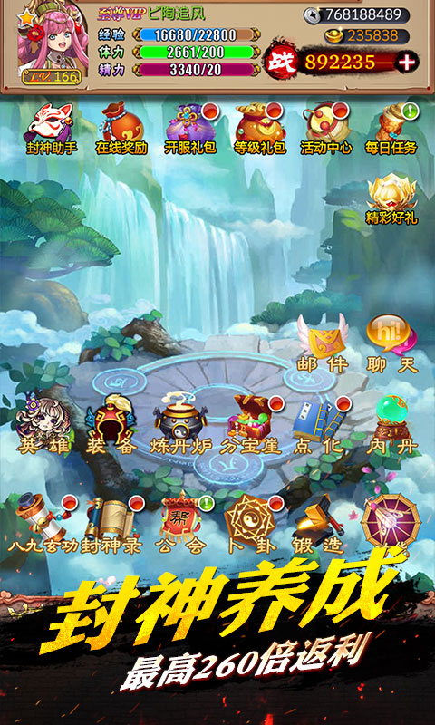 3、首充奖励大幅提升,神将姜子牙与红色宝物恭候您的到来。