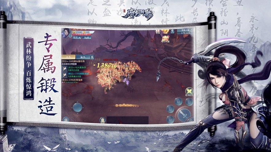 2:精致的界面风格与的操作技巧,让你尽情享受独特的武侠传说,在这里打造属于你的专属大冒险,