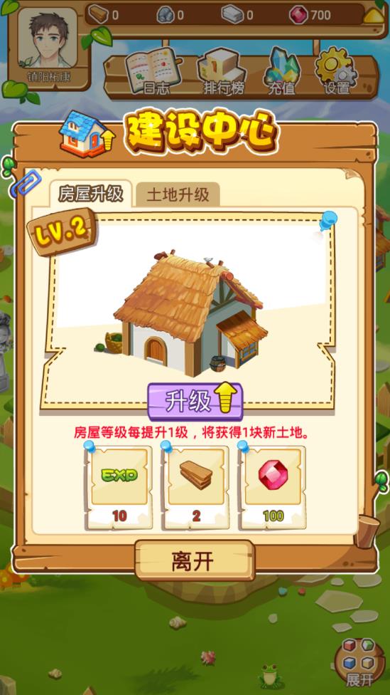 升级房屋与土地需要一定的材料(可通过果实在兑换中心兑换)