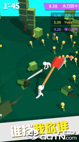 主角小人略显可爱,似乎与中的角色相似,手举大刀以固定频率落下,这一落下的操作无法由玩家掌控,唯有把握时机,以精准打击目标。可以砍伐树木或石头,以增加刀的长度。主角及刀具的皮肤繁多,望见那一大坨肉般的大刀,令人不禁想要亲手握住,必定爽快无比。来吧!让我们一起变得更长吧!