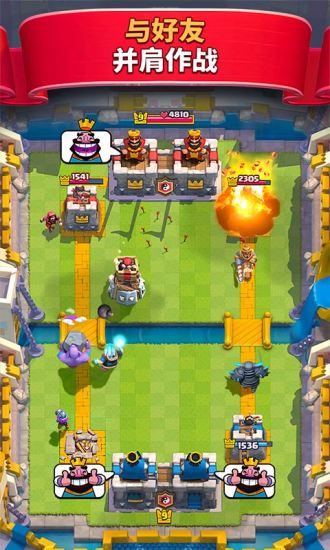 与来自世界各地的玩家随时开启一场畅快淋漓的对决,摧毁对方的国王塔,赢取宝箱解锁丰厚奖励,并在全球排行榜中争夺荣耀!