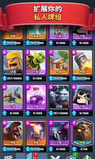 无论是憨态可掬的宝宝,英气勃发的王子,还是能轰动全场的闪电与火球,各具特色的军营建筑,皆将由你一手操控。精心构筑您的战斗牌组,凭借卓越的策略与操作,击败对手,赢取荣誉!