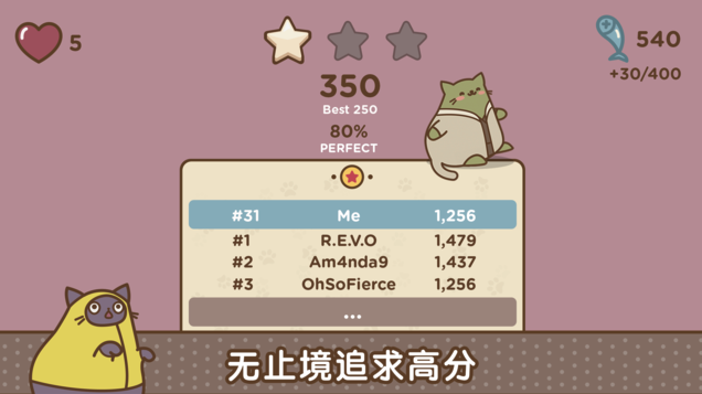 在音乐气泡飘散之前,轻轻点按它们,奏响适合与猫爪的树吉他。若能弹奏出完美的线条,便能获得可爱的小鱼。掌握流浪猫们最钟爱的旋律,给予它们丰盈的小鱼,便能吸引它们的到来。你能找到所有的流浪猫吗?