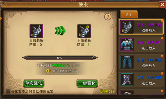 1、锻造系统涵盖了多种装备增强功能,分别为强化、升阶、橙炼、洗练、镶嵌、继承。在锻造界面,每种功能均设有独立的标签页。