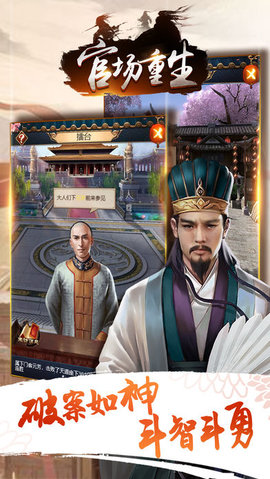 《官场重生》手游官方正版,以古代当官题材为灵感,匠心打造的一款模拟类手机游戏。在这里,你将步入朝堂,成为一名卓越的官员,为天下百姓谋求福祉,建功立业,助力国家更加繁荣富强,享受无上的权威!