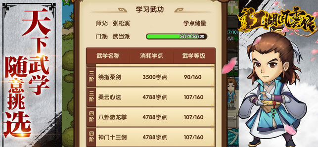 3、上百种武学招式与心法,任由玩家自由搭配;