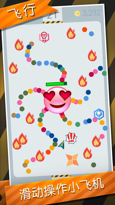 轻触,灵巧操作,持续提升你的小飞机等级,变换飞机外形,获取更多技能与道具,消灭那些追逐的球球。