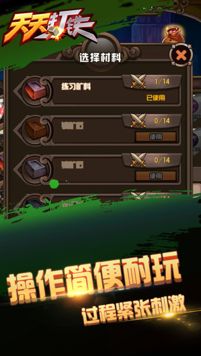 这是一款需要玩家积极操作的类休闲游戏。玩家将化身铁匠,通过工具、运用道具、开启图鉴、选择矿料,并熟练掌握锻造技艺,逐步打造出一件又一件神兵利器,最终实现成为最强铁匠的梦想。