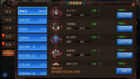图鉴全名为怪物图鉴,通过击杀怪物获取专属图鉴材料,激活图鉴后将为你带来属性的提升。