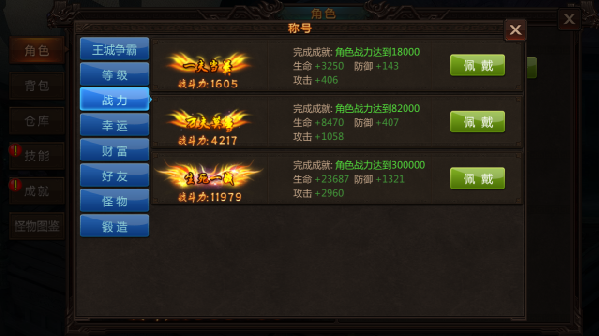 达成相应成就后可获得称号,佩戴称号将带来额外强大的属性加成。
