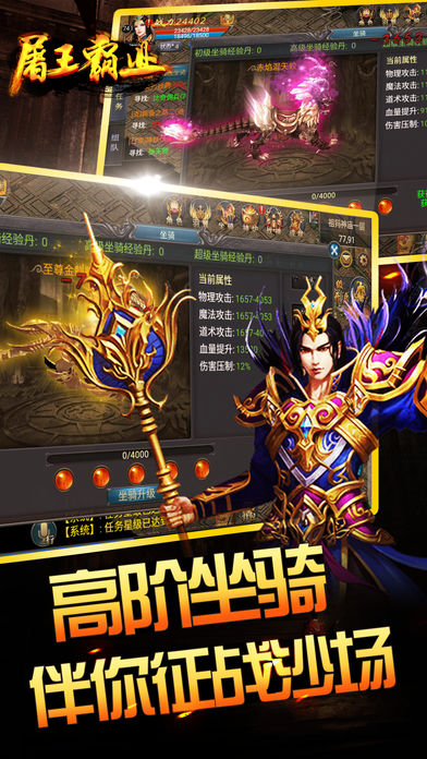 屠王霸业手游iOS版是一款令人心潮澎湃、刺激非凡的PK战斗手游,游戏中蕴藏着海量高阶坐骑,最丰富的玩法将陪伴你在沙场上征战四方;多样的玩法与炫酷的羽翼,令你尽情感受战斗升级的快感。