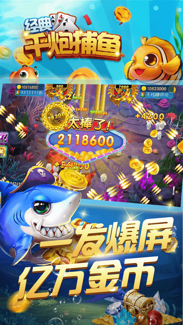 千炮捕鱼iOS版是一款备受喜爱的竞技休闲手游,呈现出最为真实与酷炫的经典画面,让玩家如同置身于的海洋之中,尽享快感;全新推出的新手专属福利,登陆即赠海量金币和话费,全新的世界boss将带您领略捕鱼的新奇世界。