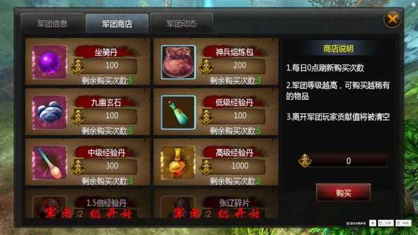 a)玩家获得贡献值后,可在军团商店中购买物品。