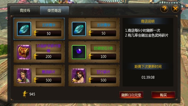 f)竞技商店中的商品列表每隔6小时刷新一次。