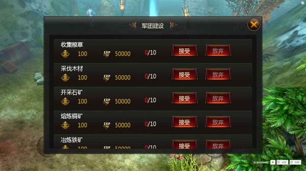 a)玩家加入军团后,每日可接取军团任务,完成后可获得军团贡献值与经验值。