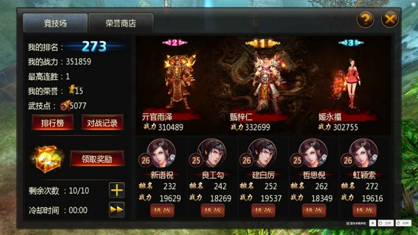 c)每次挑战可获得少量武技点与功勋点奖励。