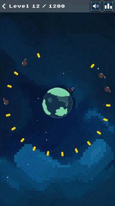 在游戏中,玩家将操控一位忍者,穿梭于仿佛旋转的星球之中。每一关的任务是收集三颗星星,并寻找通往下一关的出口。